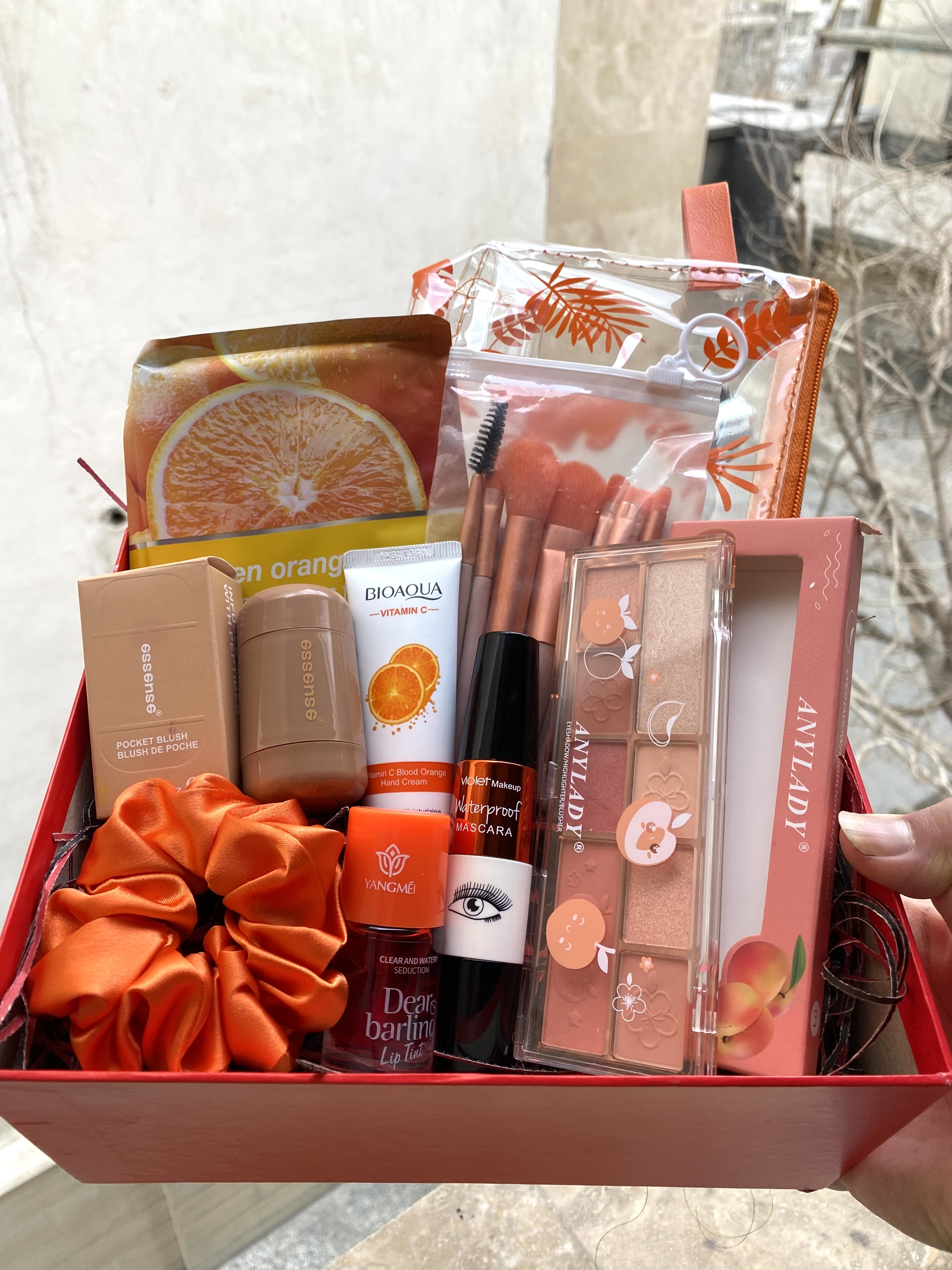 باکس هدیه ولنتاین لوازم ارایشی نارنجی