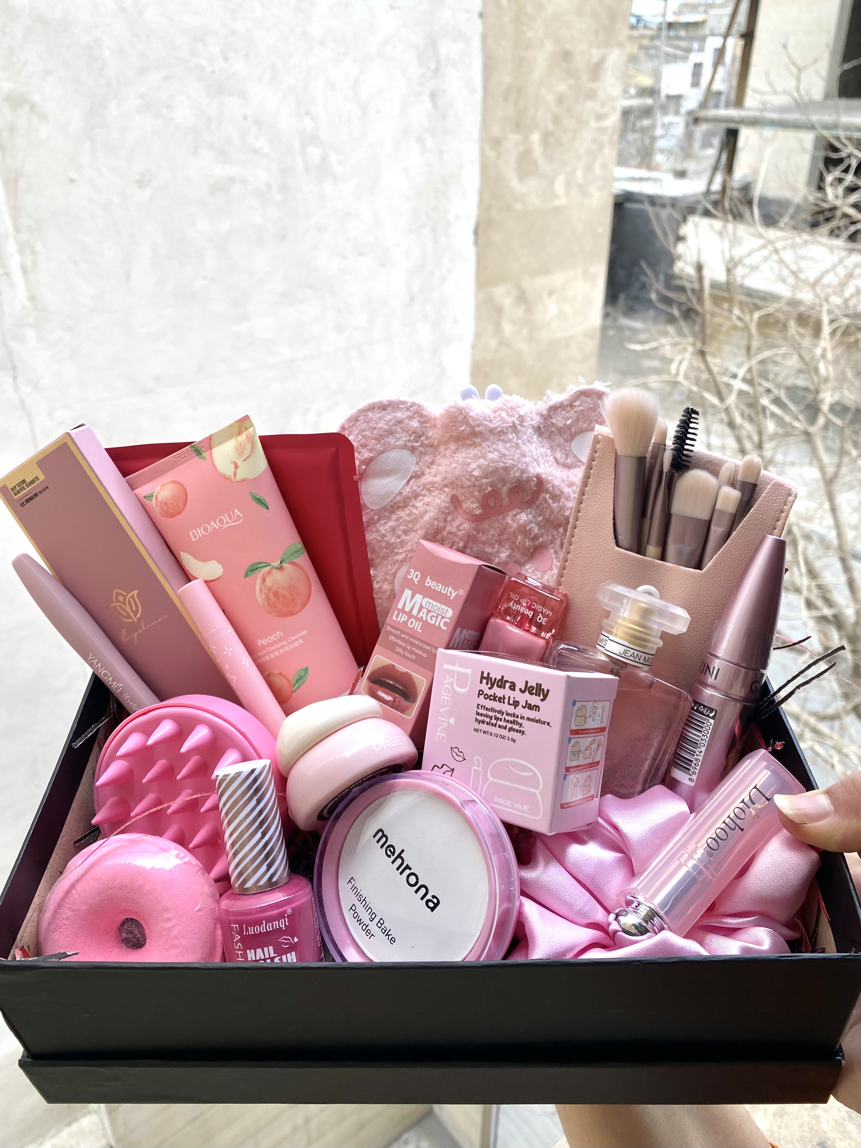 باکس هدیه ولنتاین لوازم ارایشی صورتی۳