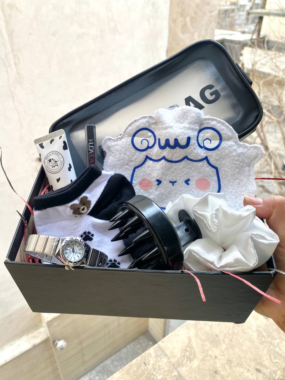 باکس هدیه ولنتاین لوازم ارایشی سفیدمشکی