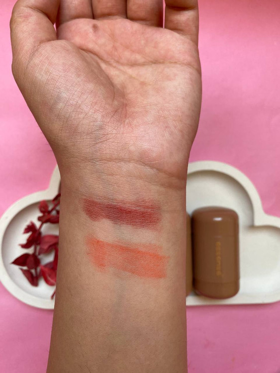 این رژگونه کرمیه خیلی قشنگ روی پوست میخوابه هم میتونید باانگشت پخش کنین هم با براش🥰❤️