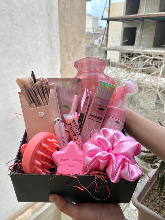 باکس هدیه ولنتاین لوازم ارایشی صورتی۱