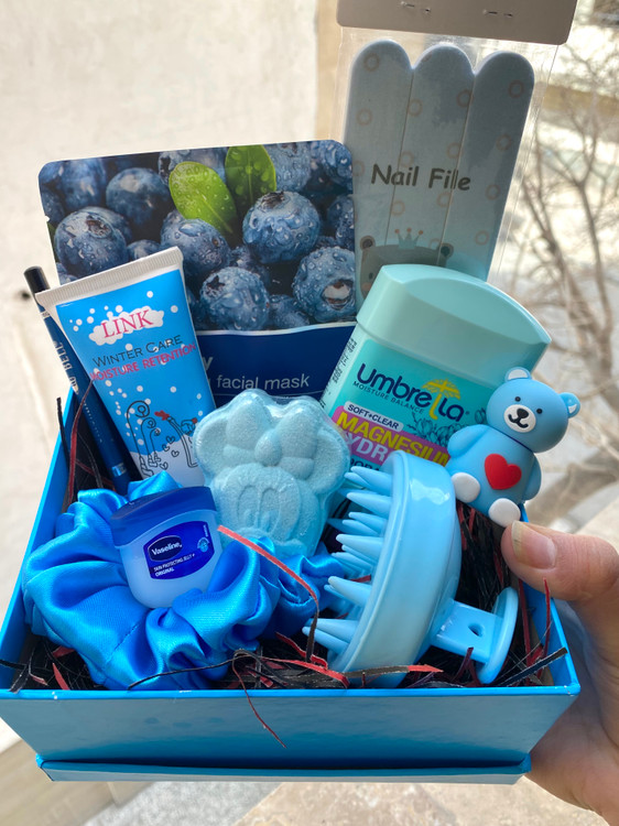 باکس هدیه ولنتاین لوازم ارایشی آبی۲