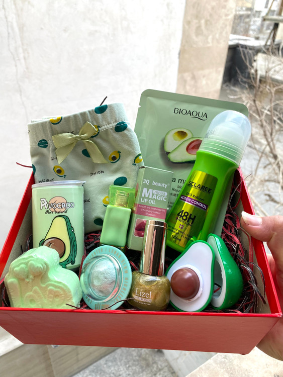 باکس هدیه ولنتاین لوازم ارایشی سبز