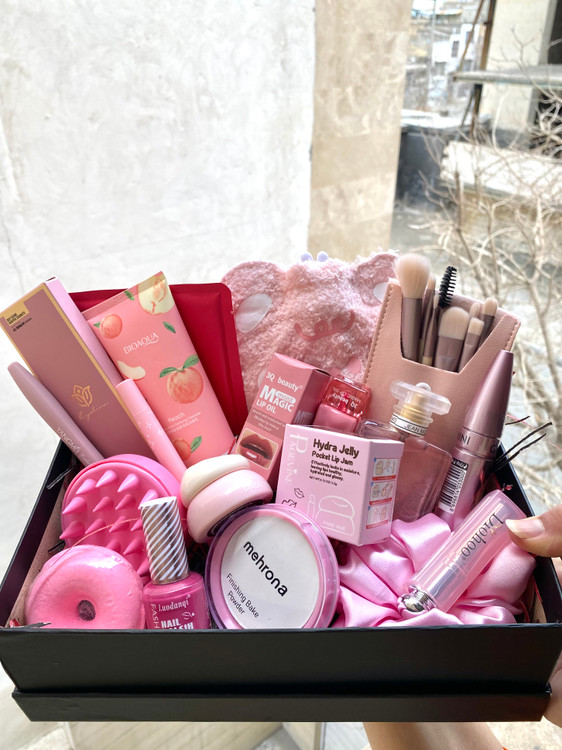 باکس هدیه ولنتاین لوازم ارایشی صورتی۴