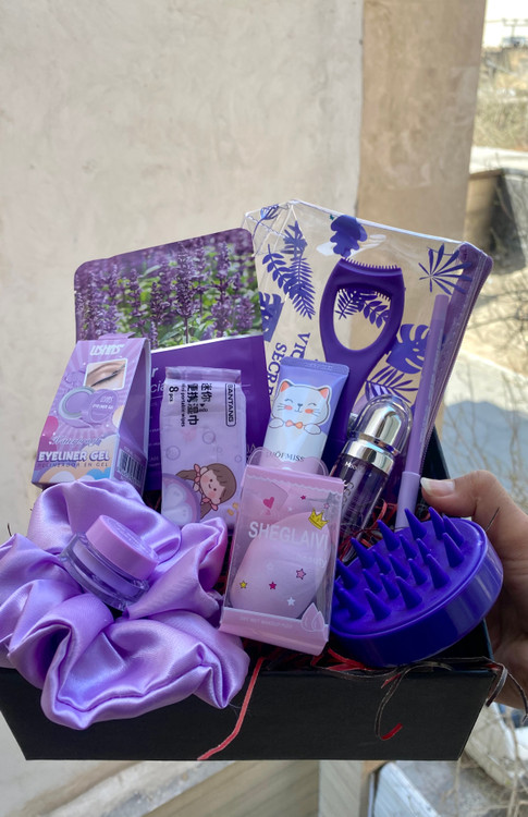 باکس هدیه ولنتاین لوازم ارایشی بنفش۲